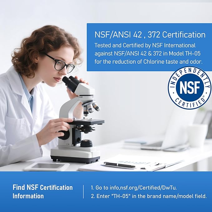 - This Filter (TH-05) is Tested and Certified by NSF international against NSF/ANSI Standard 42 for materials and structural integrity requirements.