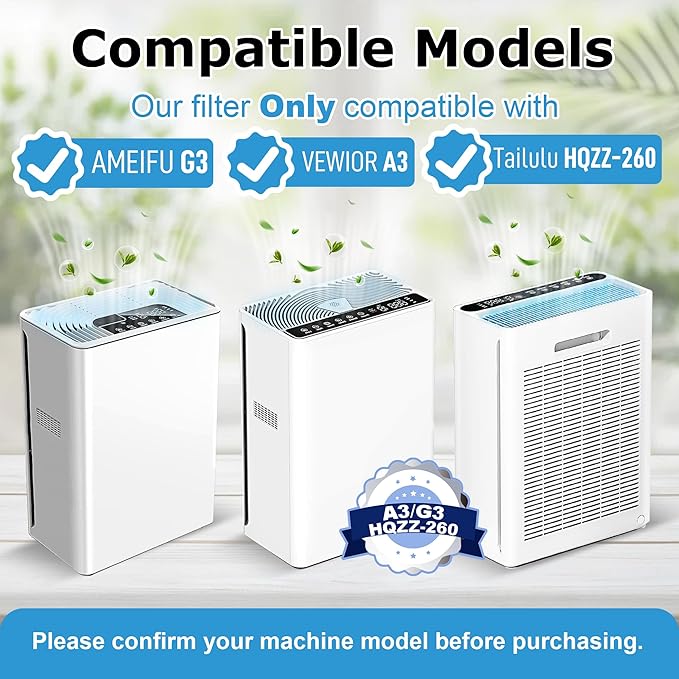 - Compatible Models: The Replacement Filter is Compatible with AMEIFU air purifier G3 (Sferf-30) (FXAP2W), VEWIOR A3 and Tailulu HQZZ-260 air purifier. ❌𝐍𝐨𝐭 𝐅𝐢𝐭 𝐟𝐨𝐫 𝐀𝐌𝐄𝐈𝐅𝐔 𝐅𝟏 𝐀𝐢𝐫 𝐏𝐮𝐫𝐢𝐟𝐢𝐞𝐫❌