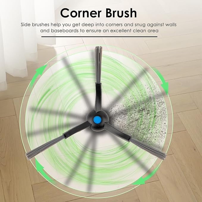 - 【Side Brush】6 side brushes included. Our T50 Pro Omni side brush's innovative structural design effectively prevents hair and other garbage from being entangled and enhances the ability to collect garbage. It can get deep in to corners and snug against walls and baseboard to ensure an excellent clean area. The bristles on our side brushes are made of premium nylon, which are more durable and clean better.