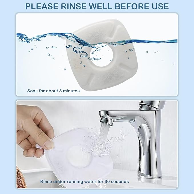 - 【Replace The Filter Regularly】:These cat dog water fountain filters are made of environmentally friendly materials and are non-toxic/harmless to your pet’s health.To ensure the health of your pets, please maintain the habit of changing the replacement filters for cats dogs indoor every 2-4 weeks and the replacement pre-filter sponges every month. For optimal water quality, please soak the cat water fountain filters for 3 minutes to remove excess toner and then rinse thoroughly with running water before placing them in the pet water fountain.