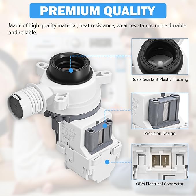 - PREMIUM QUALITY - Whirlpool washer drain pump is made of high quality material, heat and wear resistance, more durable. It is very easy to install, no extra wires or other tools are needed, and it is perfectly compatible with the washing machine. If your washer does not drain and water still remains in the tub, you may need this TOVEN-RV B25-3A04 washer drain pump. Unplug the washing machine before installing this replacement part. It's suggested to wear gloves to protect your hands.