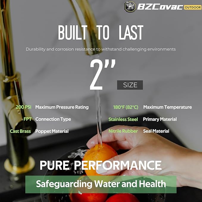 - Backflow Prevention - Internal spring-loaded mechanism allows water to flow in only one direction, preventing reverse flow and protecting pumps from damage