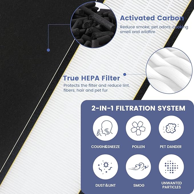 - 【Incredible Value】Package contains 4 H13 Filters and 8 Pre-Filters.Uses high-efficiency technology to absorb impurities in the air. Say goodbye to the dust, pollen, pet odors, dander, smoke and more.