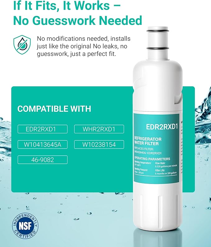 - Compatibility: Compatible with EDR2RXD1, W10413645A, W10238154, W10413645, P6RFWB2, 46-9082/9903.The above models are for reference only.