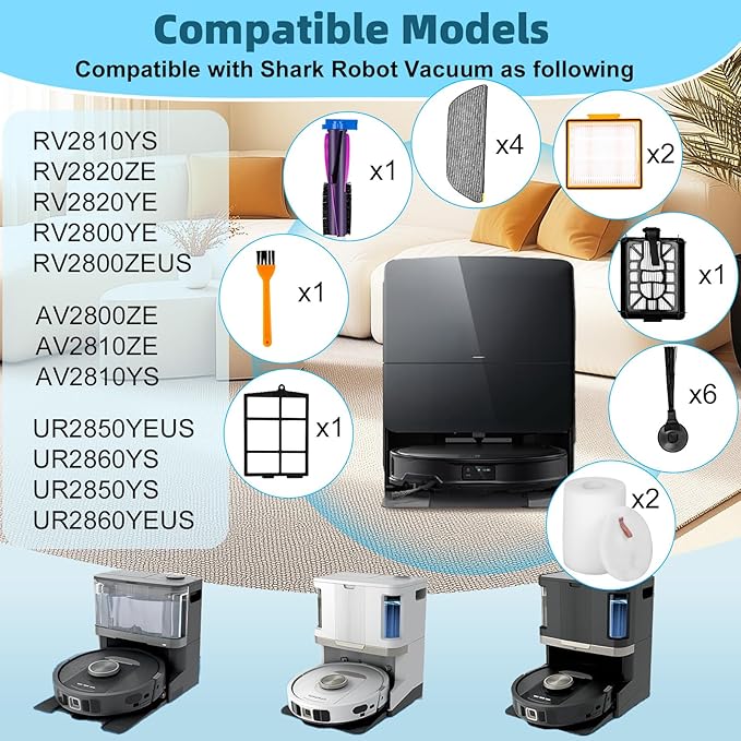 - Perfect Compatibility:Replacement parts accessories compatible with RV2820ZE,RV2820YE,RV2800YE,AV2800ZE,AV2810ZE,RV2800ZEUS,AV2810YS,RV2810YS,UR2850YEUS,UR2860YS,UR2850YS,UR2860YEUS vacuum robot