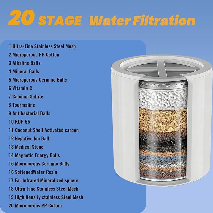 - STABLE WATER PRESSURE - Experience the perfect balance of powerful water pressure and pure filtration. Engineered with a high-output design, our shower head filter maintains a robust flow rate of up to 2.5 GPM, ensuring a satisfying and energizing shower every time. You never have to sacrifice water pressure for cleaner, healthier water.