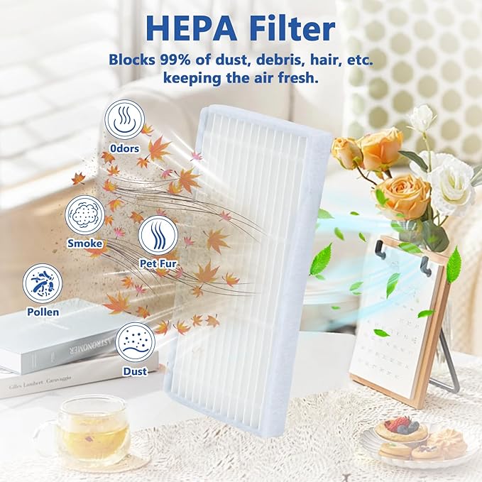 - Premium Materials: Soft-bristle roller brushes and side brushes protect surfaces while effectively reaching deep into carpets and cracks. High-efficiency HEPA filters trap fine dust, allergens, and pet hair (captures 99% of particles as small as 0.3 microns). Ideal for homes with pets or long hair.