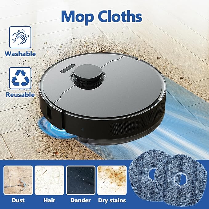 - Warm Tip: For best results: Hand wash mop cloths in warm water and air dry completely before reuse. Replace mop cloths, side brushes and HEPA filters every 2-3 months. Replace the main roller brush every 6 months. Regular maintenance ensures peak suction, cleaning performance, and extends your robot's lifespan.