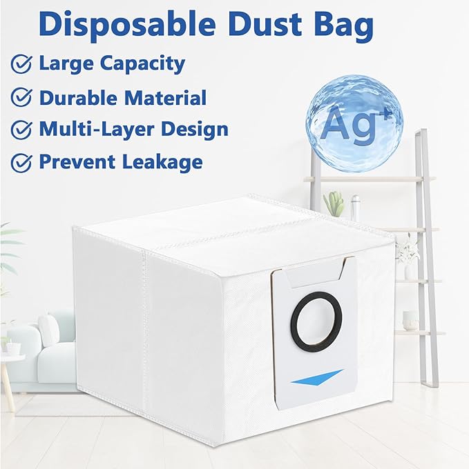 - Premium Materials: Our replacement for Ecovacs Deebot T20 Omni replacement parts feature materials for exceptional performance. The rubber main brush effectively removes dirt while protecting floors. The larger dust bag is sealed to prevent leakage. The mop pads have a strong ability to absorb water and remove dirt. Soft side brushes tackle dust in tight spaces. The HEPA filter eliminates 99.97% of particles as small as 0.3 microns.