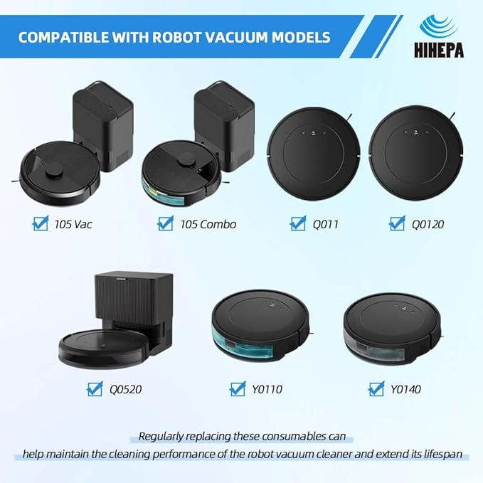 - 【Compatible Robot Vacuum Models】These Y0140 robot vacuum accessories are specifically designed for iRobot Roomba Combo and Vac Essential Robot Vacuum models - Q0120, Y0110, Q0520, Y0140, Q011,105 Vac & 105 Combo. IMORTANT REMINDER: Please verify your machine model before purchasing to avoid making incorrect purchases.