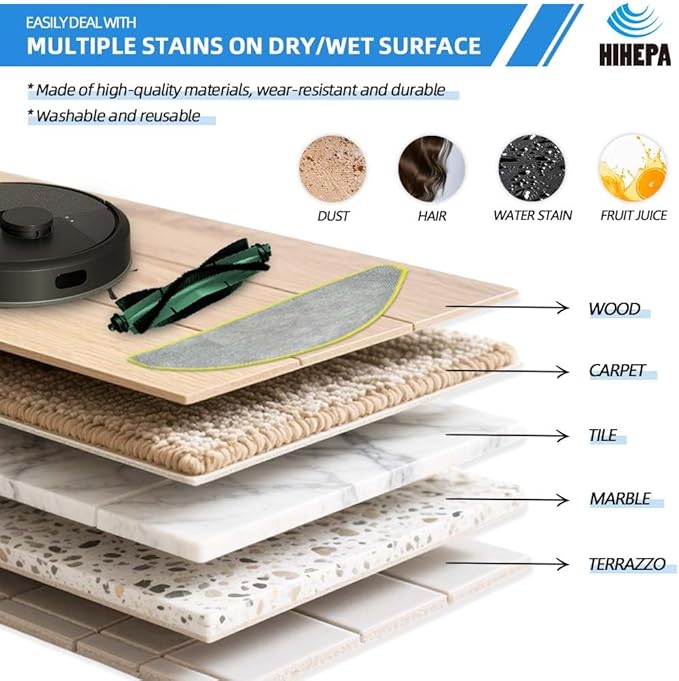 - 【Washable Mop Pads】 High-absorption fabric enhances scrubbing power for sticky spills on hard floors.