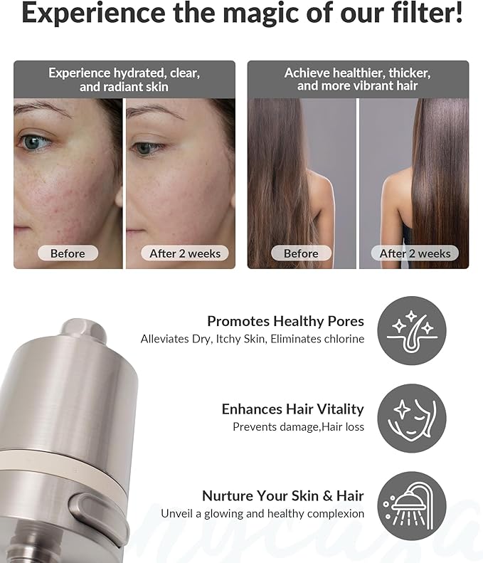 - 【Gentle Enough for Daily Use by All Ages】Say goodbye to redness and hair damage caused by harsh shower water. Ideal for families and individuals with sensitive skin or scalp concerns. This shower head filter for hard water helps restore moisture, reduce irritation, and improve hair texture by reducing harsh chemicals from your water supply.