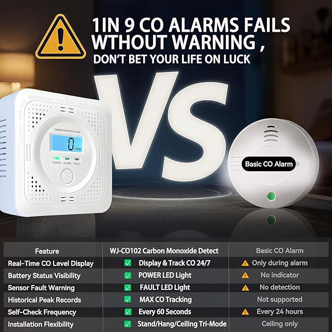 - Always-On Safety Assurance Display!never miss a warning with our multi-info lcd screen! unlike basic carbon monoxide detectors, it displays real-time co concentration, battery status, and faults 24/7 – perfect for protecting newborns, seniors, and pets in your home.