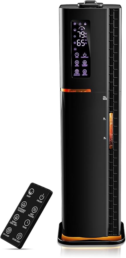 - 【One Humidifier for All Seasons!】This versatile humidifier features both cool and warm mist options, making it ideal for year-round use. Enjoy a refreshing cool mist during hot summer days, while the soothing warm mist provides comfort during chilly winter nights. Its gentle formula is skin-friendly and disperses quickly for maximum relief. Additionally, this humidifier includes several thoughtful design :1.Top-Fill Design; 2.Visual Water Level Window; 3.LED Control Panel; 4.Remote Control.