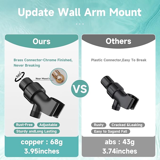 - 🚿【5 Minutes Quick Installation】No plumber needed. Easy to install and disassemble, high pressure shower head is suitable for rental rooms, convenient for daily use and regular cleaning. Universal G1/2" thread quickly attaches to any standard shower arm in minutes.