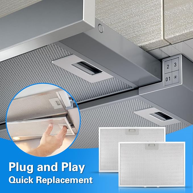 - Safe installation and usage: For installation, safety first! Please turn off the hood power in advance, clean the installation area, and wear gloves. This GE hood vent filter replacement is easy to install with a plug design—no tools needed. Just align and install it to ensure safe and correct use.