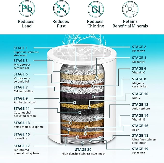 20-Stages Shower Filter Replacement Compatible with SR SUN RISE Shower Hand, Water High Efficiency Filter,Reduces Chlorine & Chemicals 3pcs