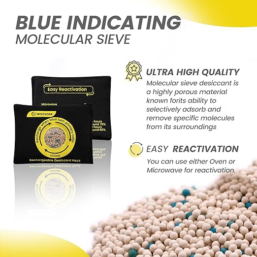 200g Reusable Molecular Sieve Desiccant Packs – Rechargeable Dehumidifier with Color Indicator for Storage, Gun Safes, Electronics, 3D Printing Filaments, Closets, Cars [3 Pack]
