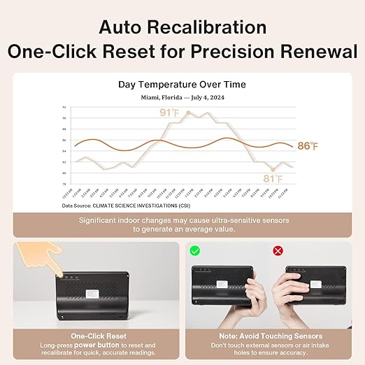 - 【0.001 Accuracy Ultra-Precision Air Sensing】Engineered with advanced multi-sensor technology and an enhanced design featuring more air holes, this air quality sensor delivers unmatched accuracy down to 0.001 units. It keeps you informed of the minutest fluctuations in air quality, enabling immediate action when needed (Please note: Avoid interference from perfumes and other odors when using)