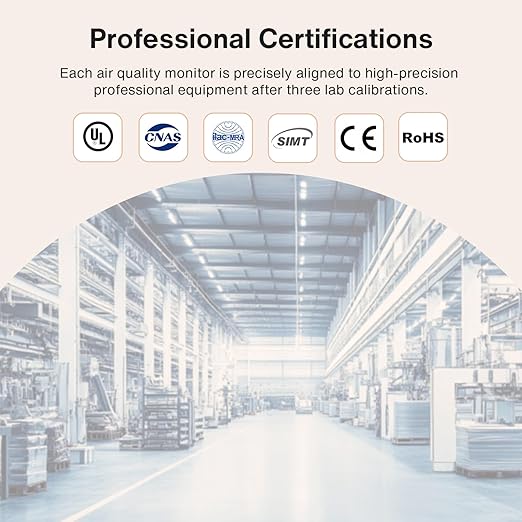 - 【Real-Time AQI Alert Buzzers】Our air quality monitor provides real-time monitoring and alerts for pollutants like CO2, PM2.5, PM1.0, PM10, HCHO, TVOC, Temperature, Humidity, and AQI, with 7 distinct alert functions. Stay informed with clear alerts and rest easy with a mute button to silence alarms. Your health and comfort are our priority
