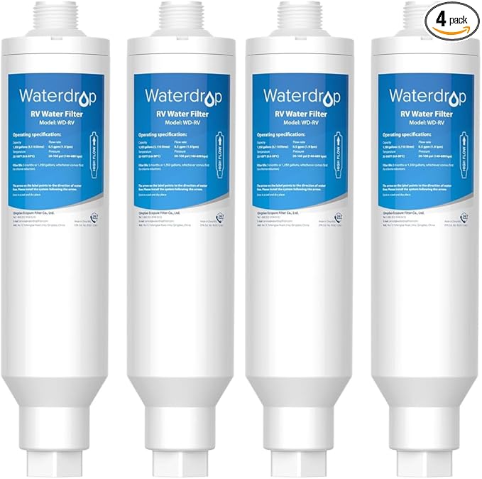 Waterdrop RV/Marine Water Filter, Camper Water Filter, NSF Certified, Garden Hose Filter, Greatly Reduces Chlorine, Bad Taste, Odor, 4 Pack
