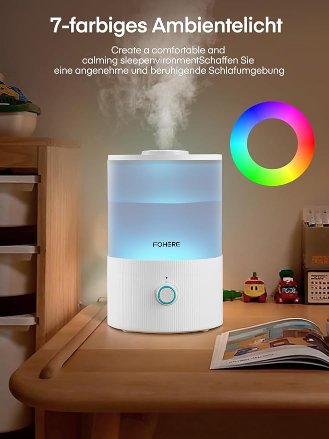 FOHERE Humidifiers for Bedroom, 3.2L Cool Mist Baby Humidifier, 28H Quiet Runtime, Auto Shut-Off, 7-Color Nightlight, Top-Fill, BPA-Free, Essential Oil Diffuser for Home, Room, Nursery, Plants,Office
