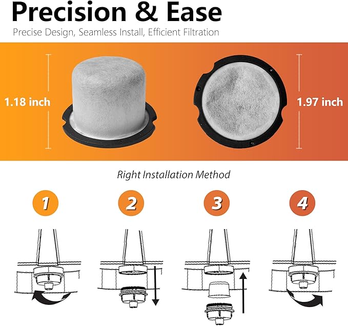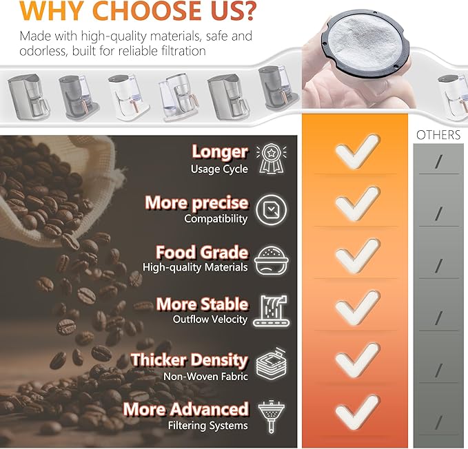 - Easy to Install: Simply place the replacement coffee filters in the water reservoir—no tools needed. For optimal use, soak it for 5 minutes and rinse for 30 seconds before first use