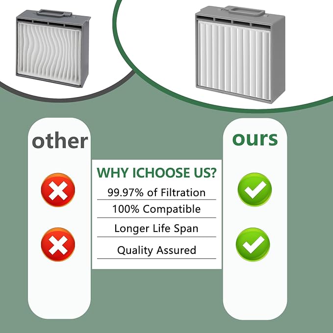 - 【Replacement necessity】Over time, filters gradually lose their filtering performance, causing the vacuum cleaner motor to lose suction power and potentially damaging the vacuum cleaner. Regularly replacing the filter helps protect the motor during cleaning and prevents particles from re-entering the air, ensuring efficient cleaning