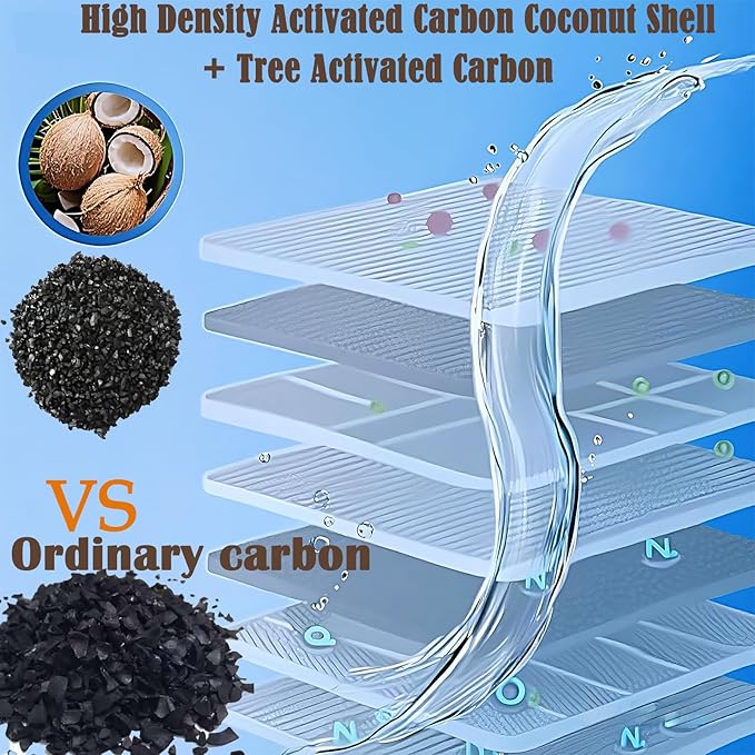 - ✅ Five-Fold Purification Tech Upgraded composite cartridge: 1st: Micro-tech isolation membrane (enhanced filtration) 2nd: High-density activated carbon (absorbs chlorine, odors) 3rd: Exchange resin (reduces limescale, treats industrial contaminants) 4th: Silver ion layer (keeps filter surface clean) 5th: Hollow fiber ultrafiltration membrane (blocks 99%+ heavy metals/rust) Lead & BPA-free. 50% higher filtration efficiency than standard versions