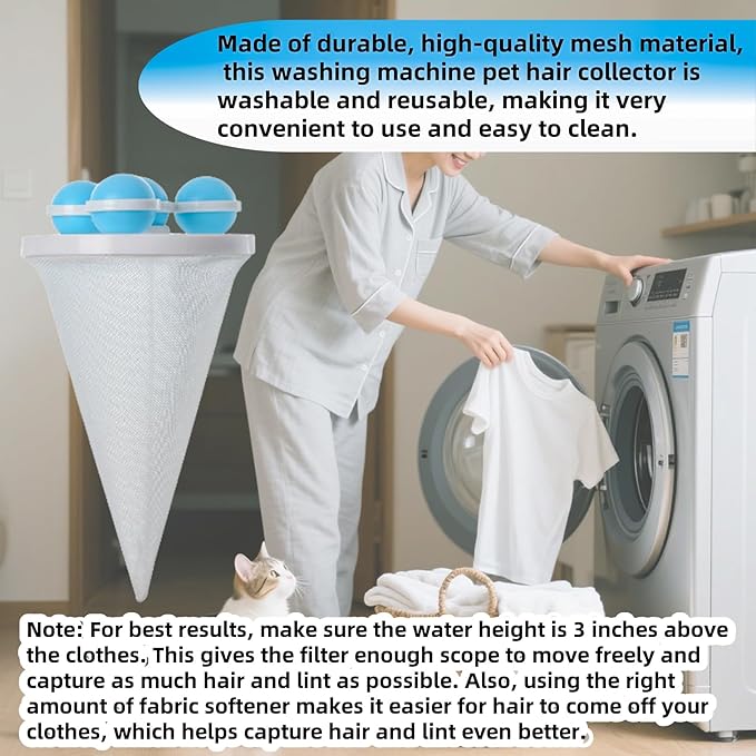 - 【Reusable and Eco-Friendly】: Made of durable, high-quality mesh material, this washing machine pet hair collector is washable and reusable, making it very convenient to use and easy to clean.