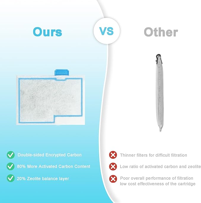- 5 in 1 Filter Cartridge & All-round Water Quality Management: Physical interception: double-sided encrypted filter, highly efficient filtration of a variety of impurities. ②Activated Carbon Reinforcement Layer: 80% more activated carbon content, continuous adsorption for up to 28 days. ③Zeolite balance layer: 20% zeolite long-lasting balance PH value, to achieve a stable water state. ④12pcs Ammonia Reducer Filter Pads:These filter media pads reduce ammonia spikes and toxic buildup in fish tanks promoting a healthy environment for fish and plants.
