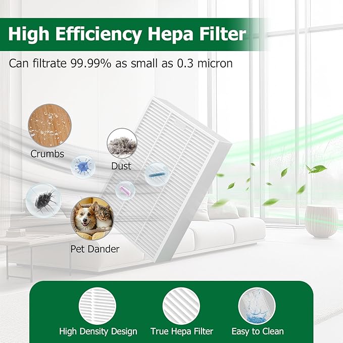 - 【High-Efficient Filtration】The high-efficiency filter is made of Abs and H13 pet washable filter paper that can effectively filter up to 99.97% of particles as small as 0.3 microns. The filter paper is folded densely, which increases the filtering area and improves the filtering performance.Chrostion provides an additional sweeping brush to help you clean the filter more effectively.