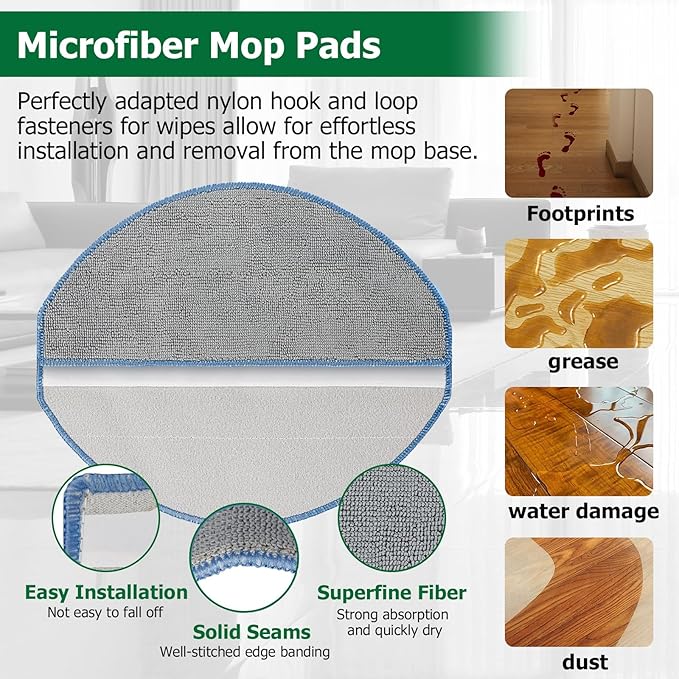 - 【Premium Quality Material】The mop pads are made of premium microfibers which have strong decontamination to pick up ultra-fine dust & debris, and break up sticky messes, grime, and kitchen grease. It also can be used on tile, hardwood, and stone, it will not scratch the floor and deliver an incredible clean on carpets and hard floors. Let you use it with ease.