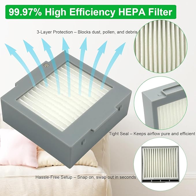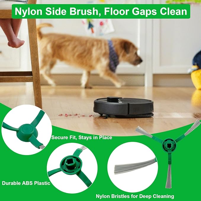 - Complete 24 Piece Value Kit: 2 Sets of Rubber Brushes, 6 HEPA Filters, 8 Dust Bags, and 6 Side Brushes. A complete replacement kit to keep your running like new for months