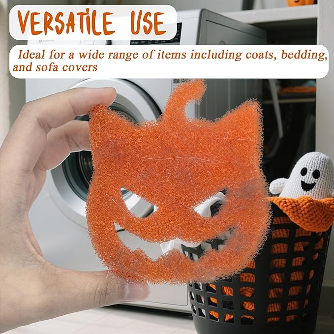 - Spooktacular Halloween Design: Features a fun and festive pumpkin cat shape in vibrant orange, adding a playful Halloween vibe to your laundry routine while effectively tackling pet hair