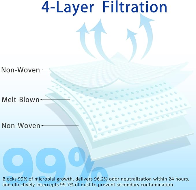 - 【4-Layer Premium Filtration】Constructed with dual meltblown layers and dual non-woven fabric, each vacuum bag filters 99.97% of dust, hair, and particles as small as 0.3 microns. Durable and tear-resistant for long-lasting performance.