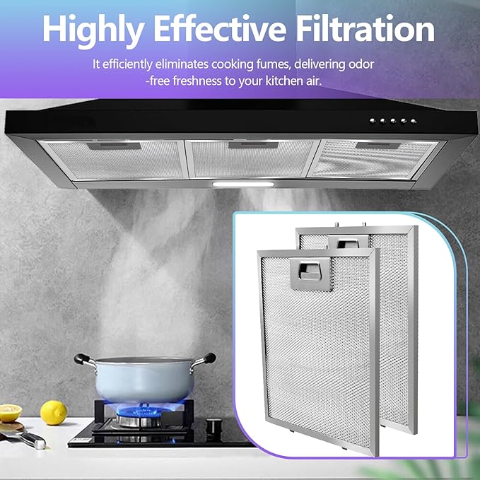 - Product dimensions:2 pieces of stainless steel oil fume extractor filters, Stainless steel adjustable clasp with reinforced frame for ultimate durability , 10.4" x 8.7" x 0.3", accurate size, easily purify grease and smoke