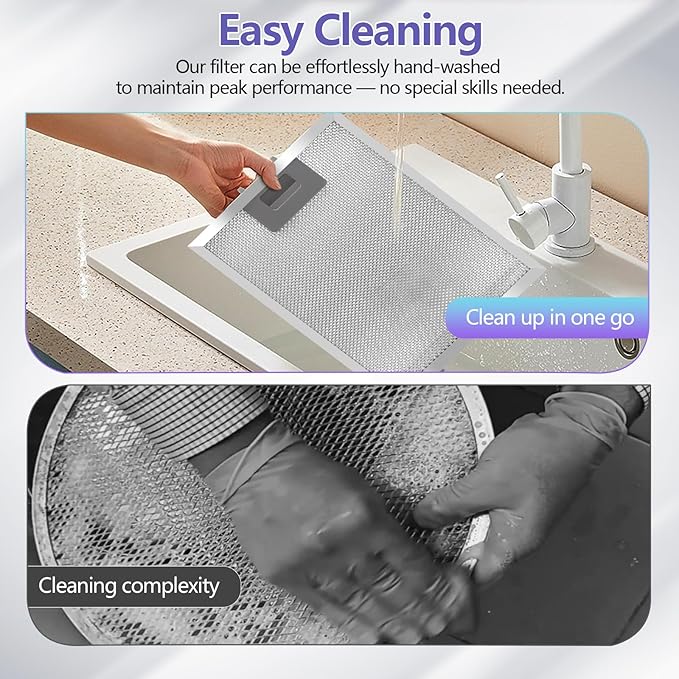 - Easy to Clean: Simply remove the filter, wash with warm water and degreaser to remove built-up grease, and extend its lifespan through regular maintenance.