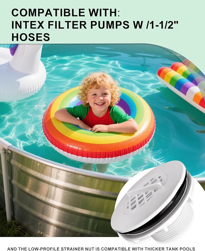 (2pcs) Threaded Inlet Strainer Compatible with Intex Filter Pumps with 1-1/2" Hoses, Above Ground Stock Tank Pool Inlet Strainer Replacement Parts Including Rubber Washer Filter Nut and Grid