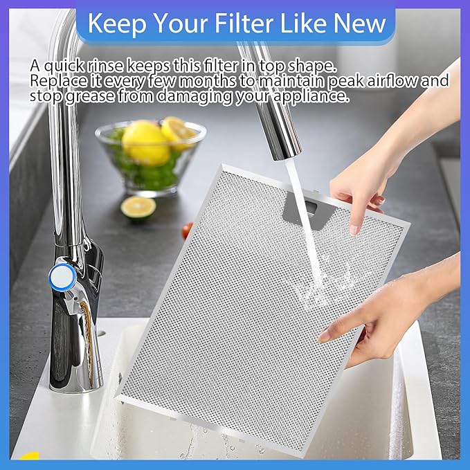 - Easy to Clean: Simply remove the filter, wash with warm water and degreaser to remove built-up grease, and extend its lifespan through regular maintenance.
