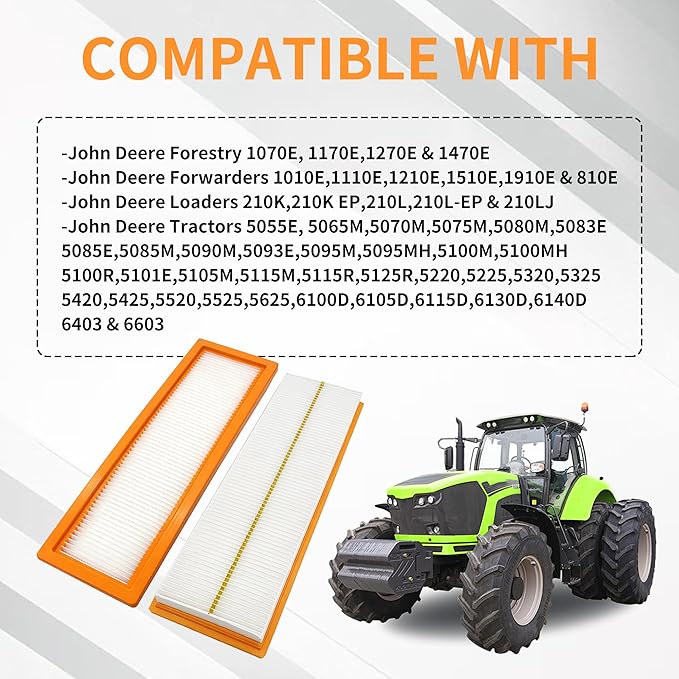 - [Fitment] Designed for JD Tractors models: 5525, 5320, 5325, 5420, 5425, 5520, 5525, 5603, 5625, 5725, 6100D, 6110D, 6115D, 6125D, 6130D, 6140D, 6403, 6603.
