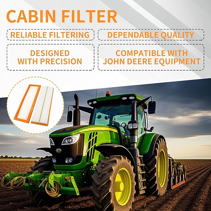 2 Pack RE198488 Cabin Air Filter Compatible with JD Tractor 5525 5320 5325 5420 5425 5525 5725 6110D 6115D 6140D 6603 Replaces PA30086 WP10160 RE73220