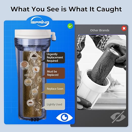 - SEE WHATβS CAUGHT - The transparent first-stage filter housing makes it easy to monitor contaminant buildup, ensuring timely filter changes.