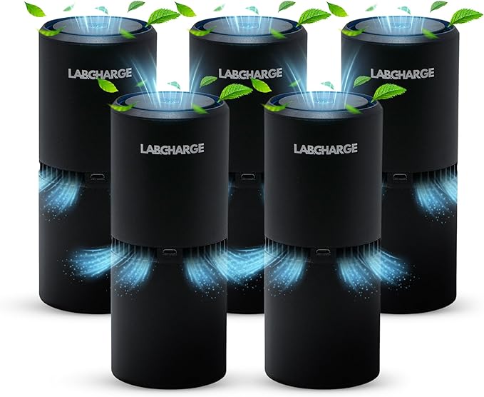 LabCharge Small Ionic Air Purifier for Home & Bedroom – Silent HEPA Filter – Covers 250 Sq Ft - Free Cleaner for Pets, Hair, Smoke, Dust, Odors & Dander – Compact & Black Design - Pack of 5