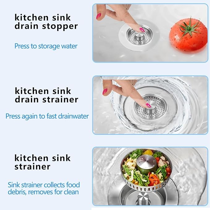 2025 Upgraded 3-in-1 Kitchen Sink Drain Strainer Stopper |Rust-Proof Strainer Basket |Universal Fit for Standard 3.5" Drains |Anti-Clog&Odor Filter |Efficient Drainage (Stainless Steel, 4 PCS)