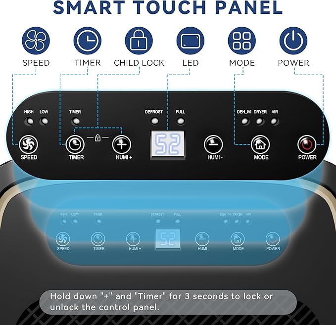- 【Smart Safeguards, Simple Solutions】 Advanced electronic sensors auto-detect humidity and water levels, pausing operation when the tank is full. Clear error codes (E1/CL/CH/LO/HI) quickly identify issues, while multiple safety protections ensure worry-free drying. For details, just check the manual!