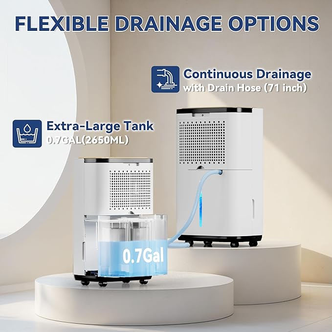 - 【Set It and Forget It Drainage】 Choose your preferred drainage: use the 1.6-gallon removable tank (auto-shutoff when full with indicator light) or connect the 72-inch drain hose for continuous, hands-free operation. No more interruptions—perfect for basements or long vacations!